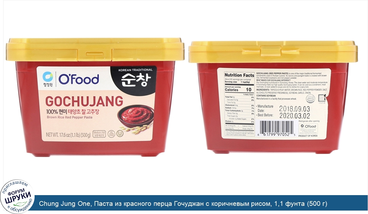 Друзья, если у вас есть отзыв/дополнение/комментарий/вопрос относительно Chung Jung One, Паста из красного перца Гочуджан с коричневым рисом, 1,1 фунта (500 г) - напишите его ответом в эту тему (это будет полезно всему сообществу в целом и вам в отдельности).