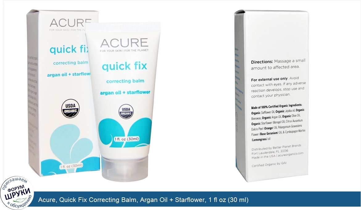 ru Acure, Quick Fix Correcting Balm, Argan Oil + Starflower, 1 fl oz (30 ml)