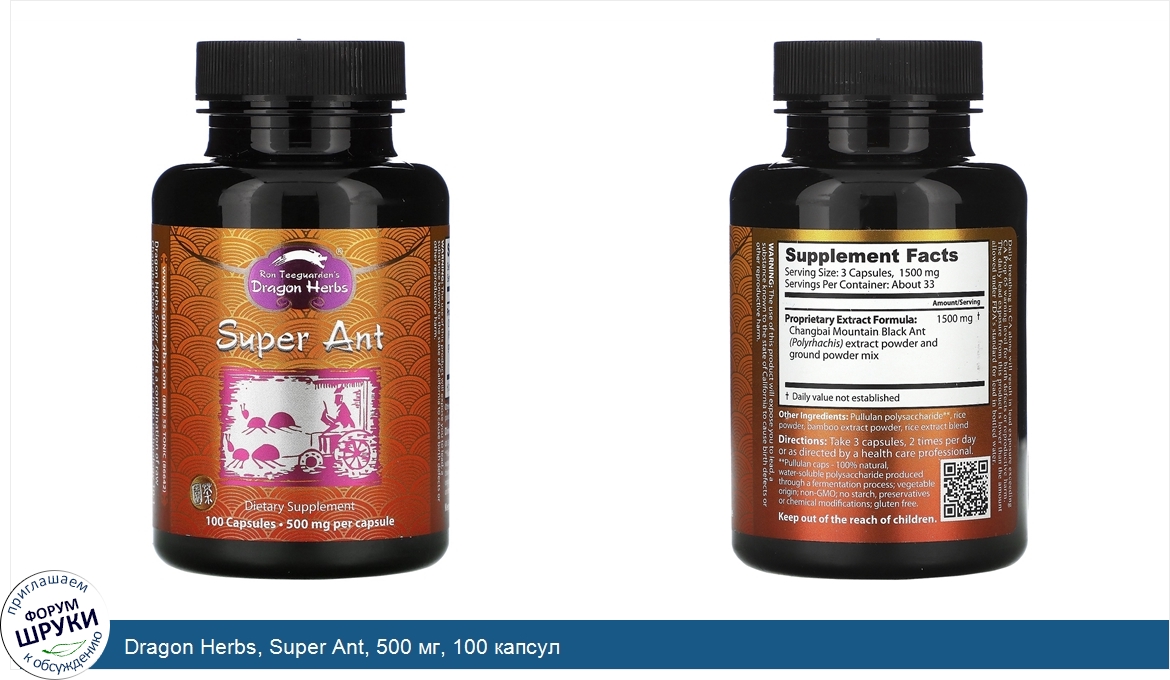 Dragon Herbs, Super Ant, 500 мг, 100 капсул