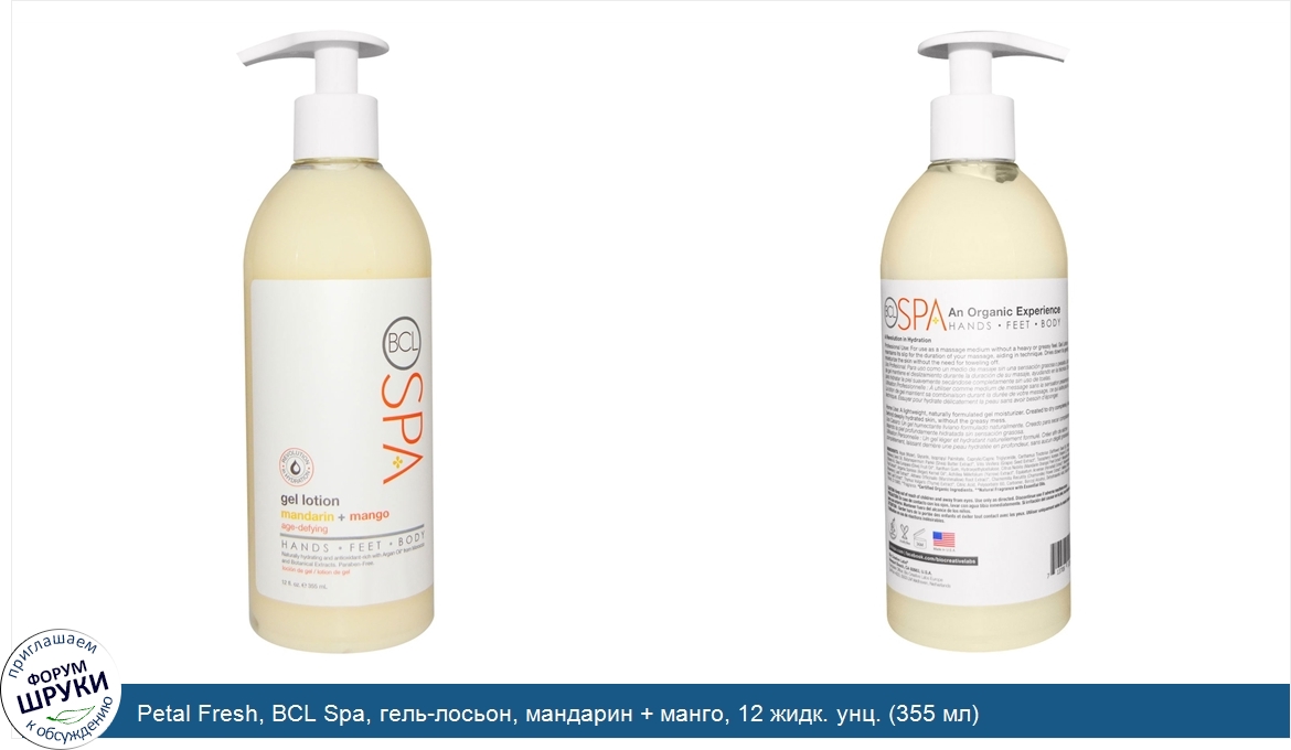 Petal Fresh, BCL Spa, гель-лосьон, мандарин + манго, 12 жидк. унц. (355 мл)