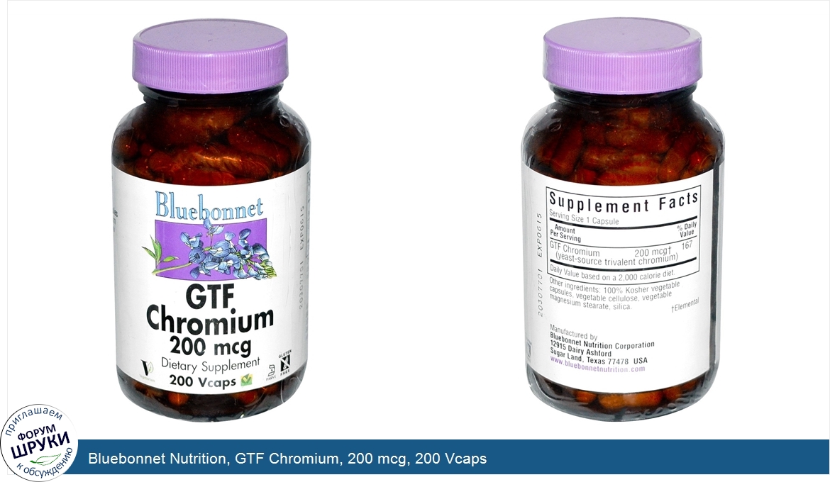 Bluebonnet Nutrition, GTF Chromium, 200 mcg, 200 Vcaps