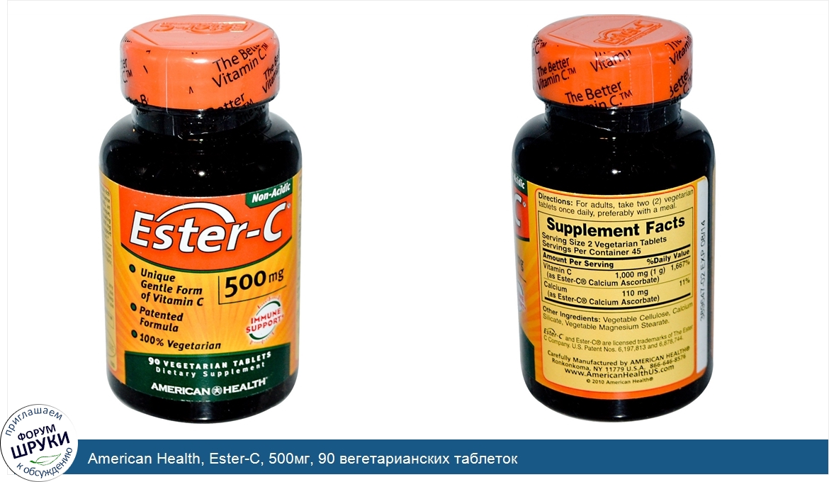 American Health, Ester-C, 500мг, 90 вегетарианских таблеток