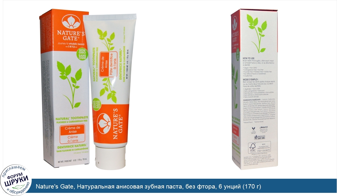 Друзья, если у вас есть отзыв/дополнение/комментарий/вопрос относительно Nature's Gate, Натуральная анисовая зубная паста, без фтора, 6 унций (170 г) - напишите его ответом в эту тему (это будет полезно всему сообществу в целом и вам в отдельности).