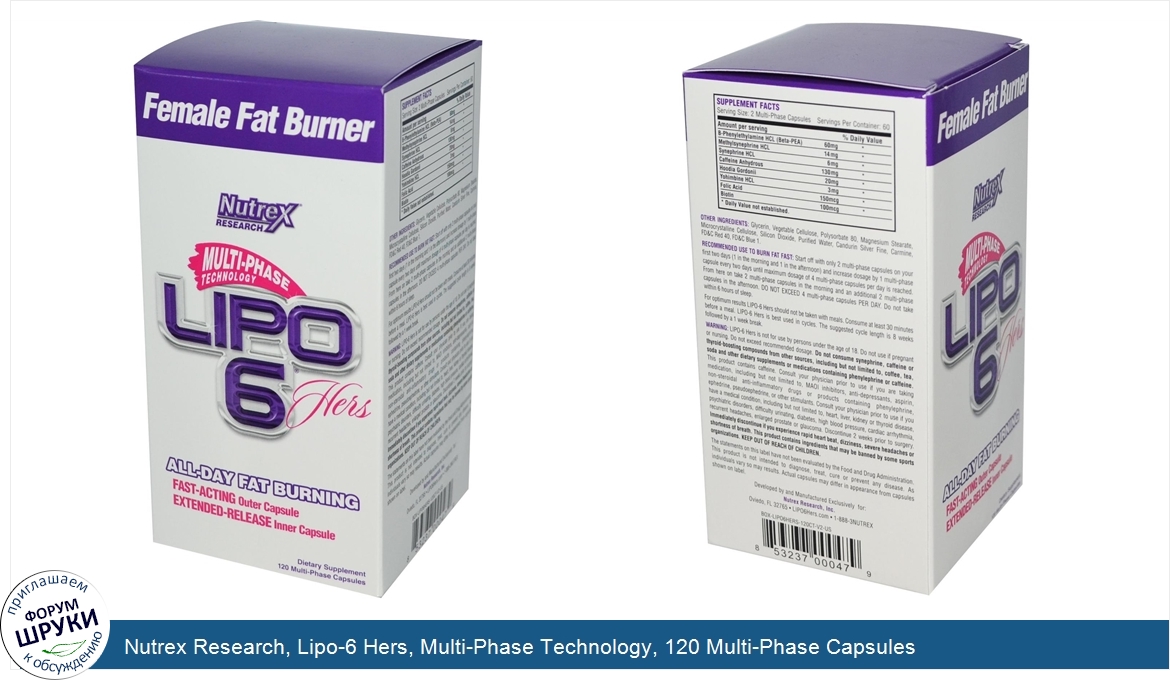 Друзья, если у вас есть отзыв/дополнение/комментарий/вопрос относительно Nutrex Research, Lipo-6 Hers, Multi-Phase Technology, 120 Multi-Phase Capsules - напишите его ответом в эту тему (это будет полезно всему сообществу в целом и вам в отдельности).