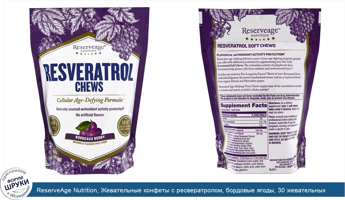 Друзья, если у вас есть отзыв/дополнение/комментарий/вопрос относительно ReserveAge Nutrition, Жевательные конфеты с ресвератролом, бордовые ягоды, 30 жевательных коныет - напишите его ответом в эту тему (это будет полезно всему сообществу в целом и вам в отдельности).