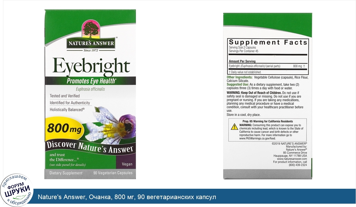 Друзья, если у вас есть отзыв/дополнение/комментарий/вопрос относительно Nature's Answer, Очанка, 800 мг, 90 вегетарианских капсул - напишите его ответом в эту тему (это будет полезно всему сообществу в целом и вам в отдельности).