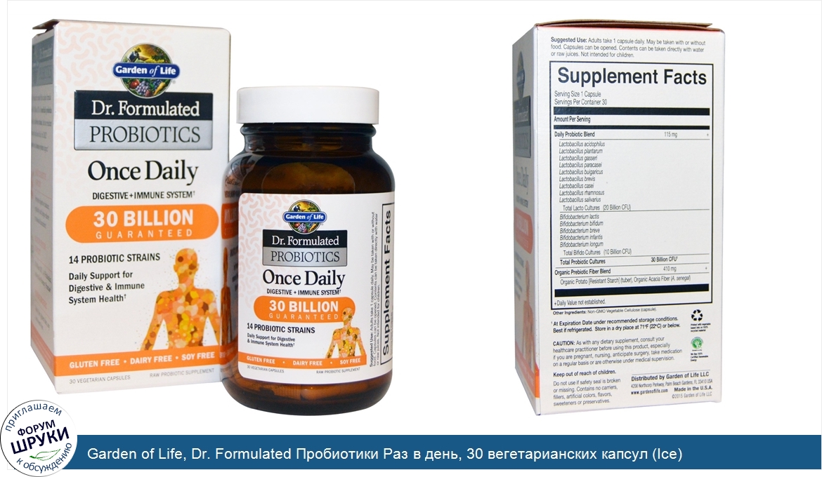 Друзья, если у вас есть отзыв/дополнение/комментарий/вопрос относительно Garden of Life, Dr. Formulated Пробиотики Раз в день, 30 вегетарианских капсул (Ice) - напишите его ответом в эту тему (это будет полезно всему сообществу в целом и вам в отдельности).