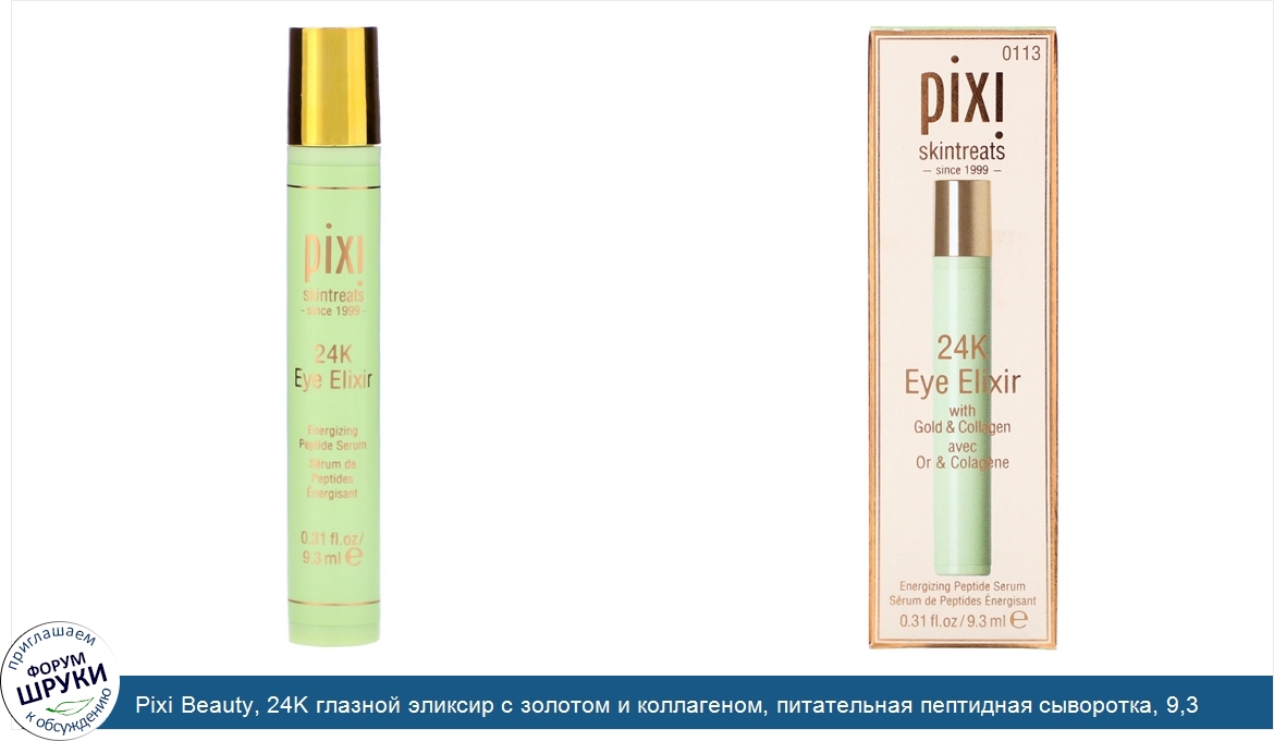 ru Pixi Beauty, 24K глазной эликсир с золотом и коллагеном, питательная пептидная сыворотка, 9,3 мл (0,31 жидких унции)