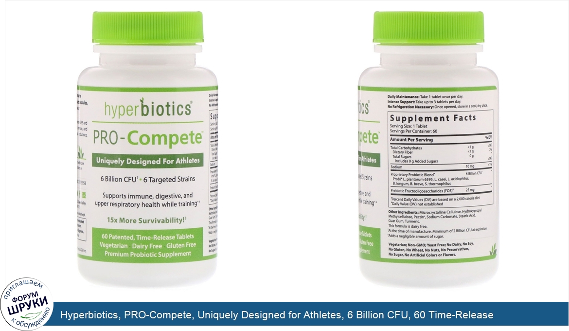 Друзья, если у вас есть отзыв/дополнение/комментарий/вопрос относительно Hyperbiotics, PRO-Compete, Uniquely Designed for Athletes, 6 Billion CFU, 60 Time-Release Tablets - напишите его ответом в эту тему (это будет полезно всему сообществу в целом и вам в отдельности).