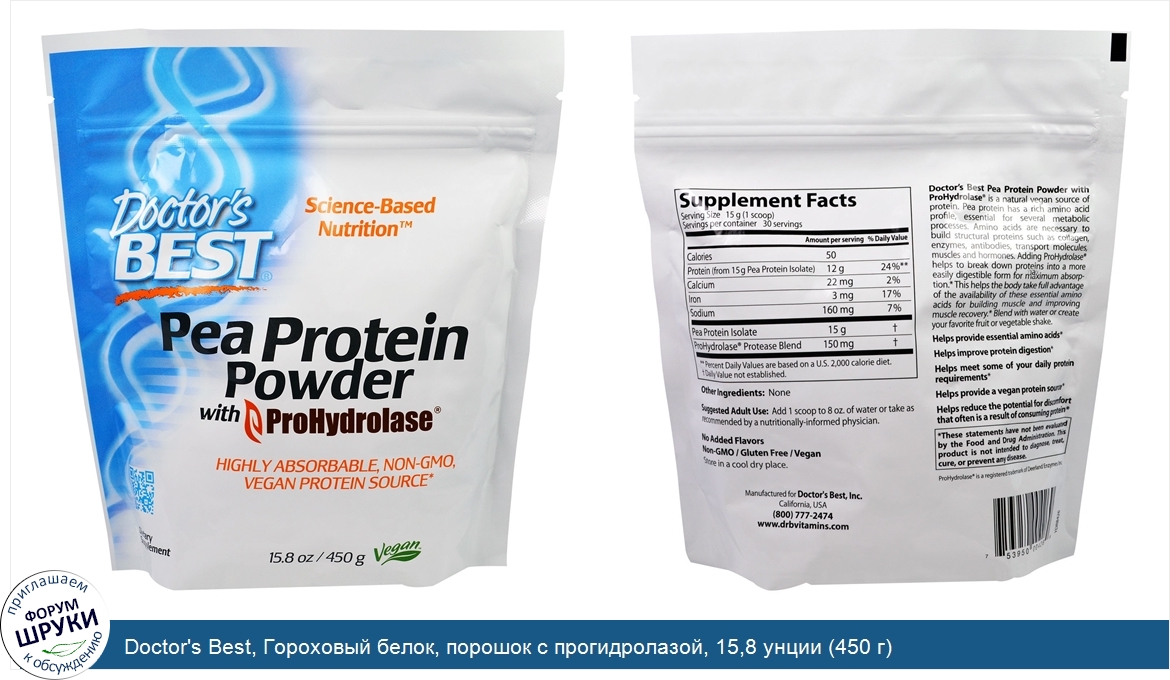 Друзья, если у вас есть отзыв/дополнение/комментарий/вопрос относительно Doctor's Best, Гороховый белок, порошок с прогидролазой, 15,8 унции (450 г) - напишите его ответом в эту тему (это будет полезно всему сообществу в целом и вам в отдельности).