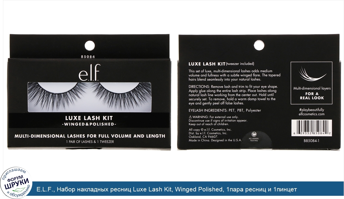 Друзья, если у вас есть отзыв/дополнение/комментарий/вопрос относительно E.L.F., Набор накладных ресниц Luxe Lash Kit, Winged Polished, 1пара ресниц и 1пинцет - напишите его ответом в эту тему (это будет полезно всему сообществу в целом и вам в отдельности).