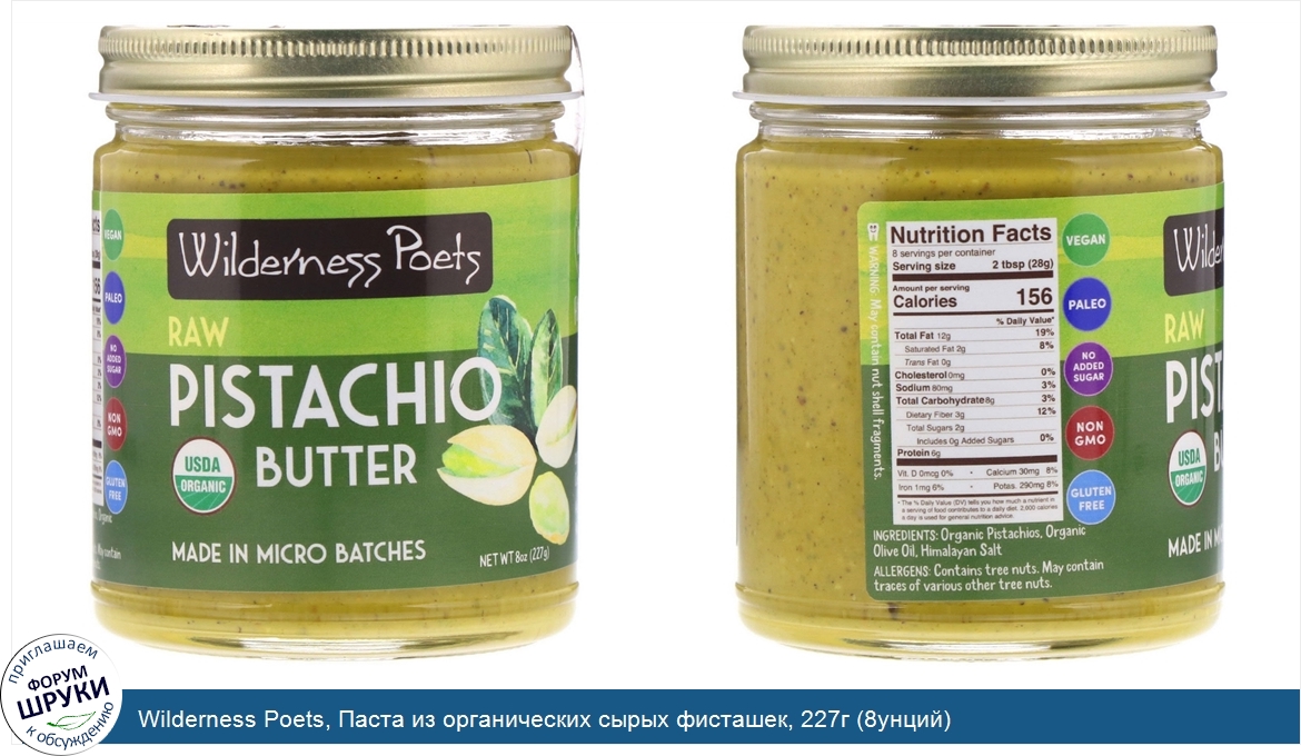 Друзья, если у вас есть отзыв/дополнение/комментарий/вопрос относительно Wilderness Poets, Паста из органических сырых фисташек, 227г (8унций) - напишите его ответом в эту тему (это будет полезно всему сообществу в целом и вам в отдельности).