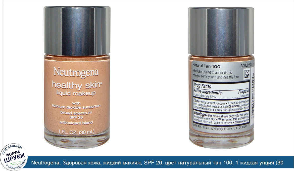 ru Neutrogena, Здоровая кожа, жидкий макияж, SPF 20, цвет натуральный тан 100, 1 жидкая унция (30 мл)