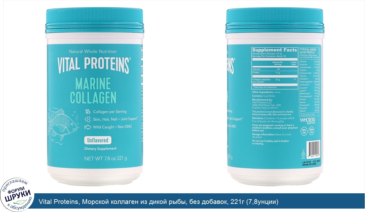 Друзья, если у вас есть отзыв/дополнение/комментарий/вопрос относительно Vital Proteins, Морской коллаген из дикой рыбы, без добавок, 221г (7,8унции) - напишите его ответом в эту тему (это будет полезно всему сообществу в целом и вам в отдельности).