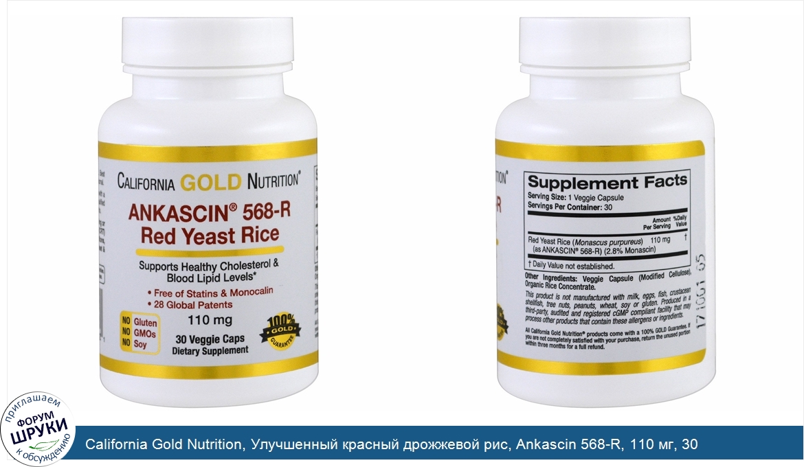 Друзья, если у вас есть отзыв/дополнение/комментарий/вопрос относительно California Gold Nutrition, Улучшенный красный дрожжевой рис, Ankascin 568-R, 110 мг, 30 растительных капсул - напишите его ответом в эту тему (это будет полезно всему сообществу в целом и вам в отдельности).