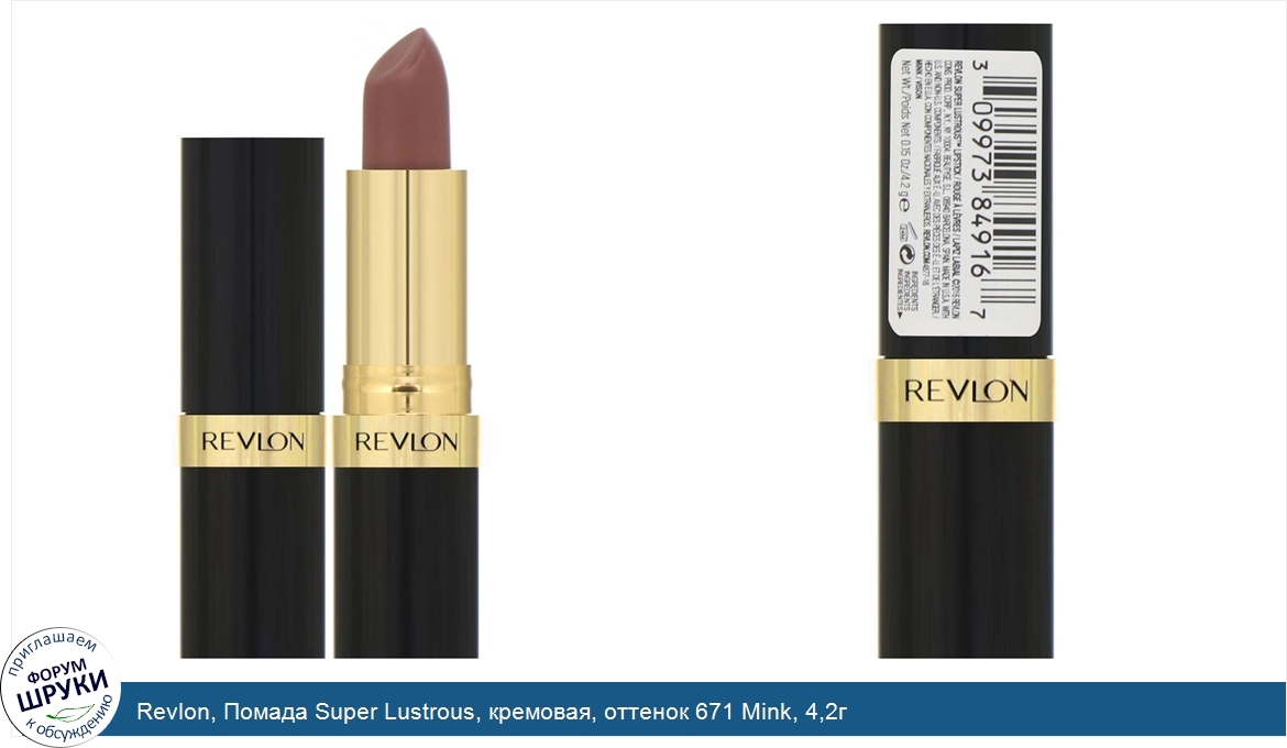 Друзья, если у вас есть отзыв/дополнение/комментарий/вопрос относительно Revlon, Помада Super Lustrous, кремовая, оттенок 671 Mink, 4,2г - напишите его ответом в эту тему (это будет полезно всему сообществу в целом и вам в отдельности).