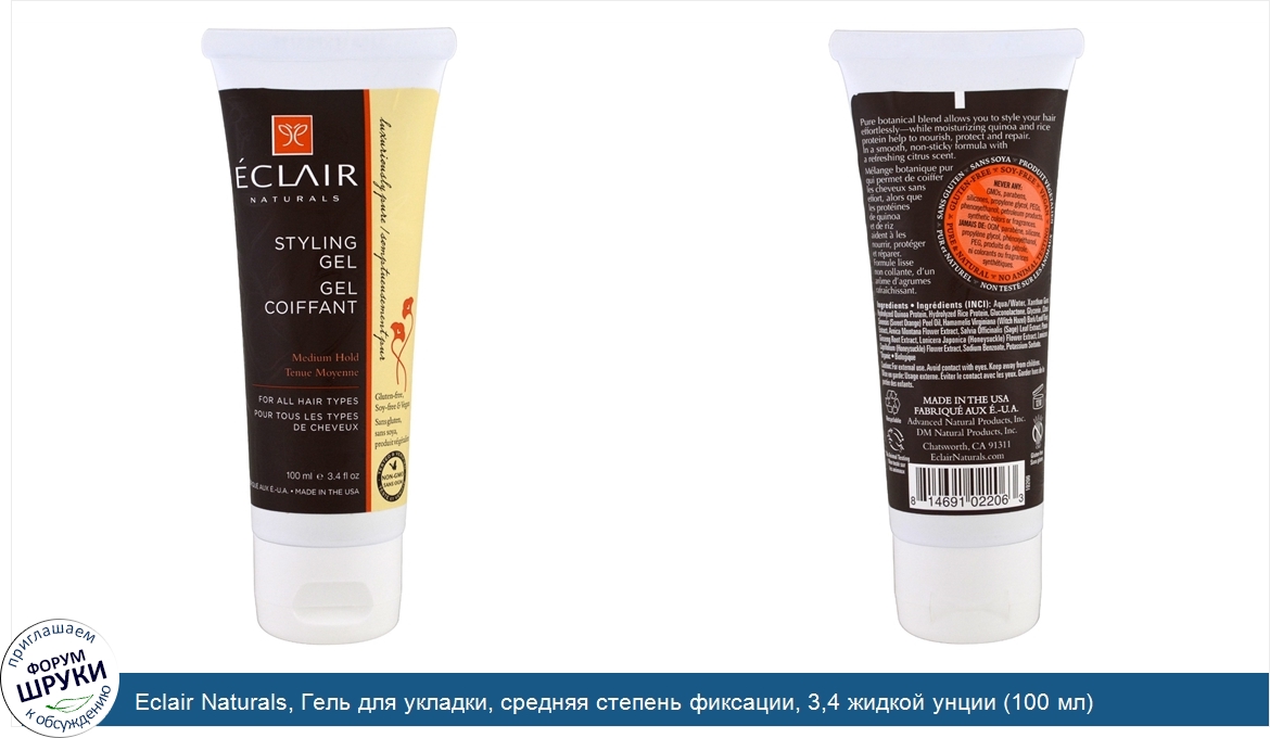 Eclair Naturals, Гель для укладки, средняя степень фиксации, 3,4 жидкой унции (100 мл)