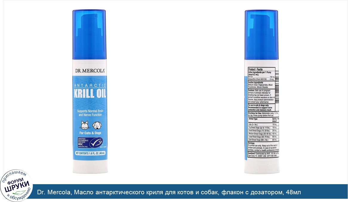 ru Dr. Mercola, Масло антарктического криля для котов и собак, флакон с дозатором, 48мл