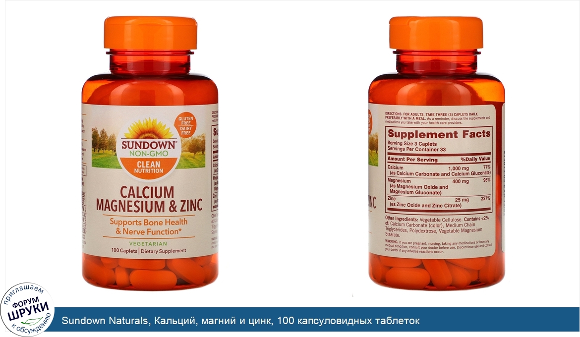 Друзья, если у вас есть отзыв/дополнение/комментарий/вопрос относительно Sundown Naturals, Кальций, магний и цинк, 100 капсуловидных таблеток - напишите его ответом в эту тему (это будет полезно всему сообществу в целом и вам в отдельности).