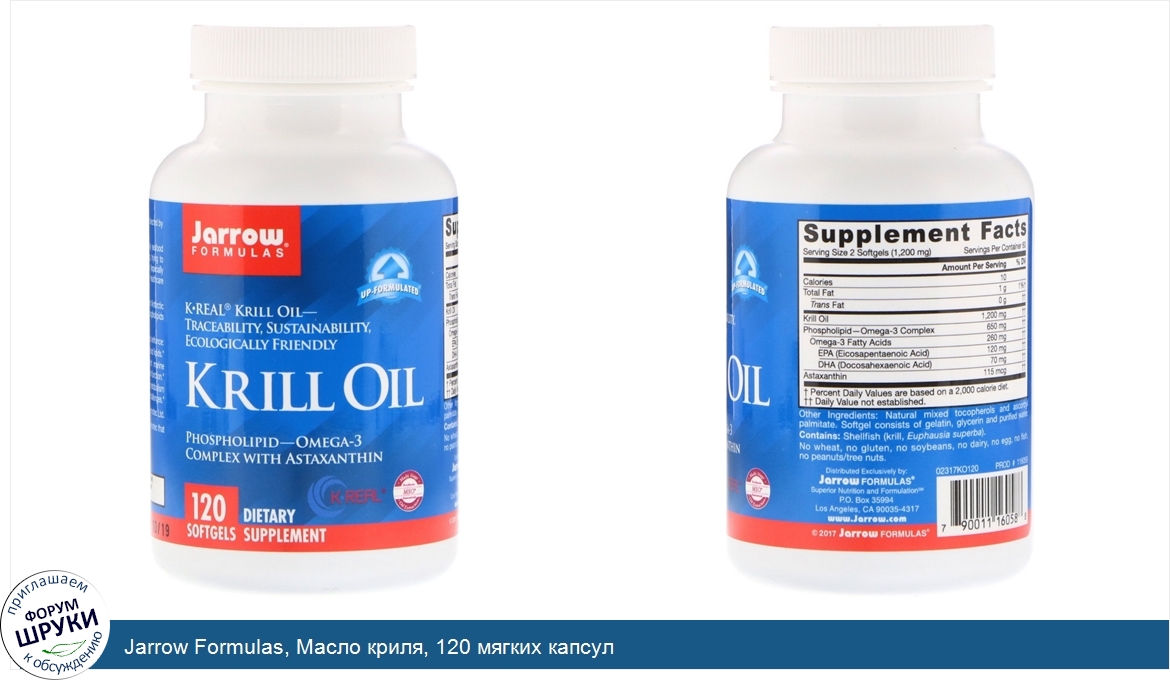 ru Jarrow Formulas, Масло криля, 120 мягких капсул