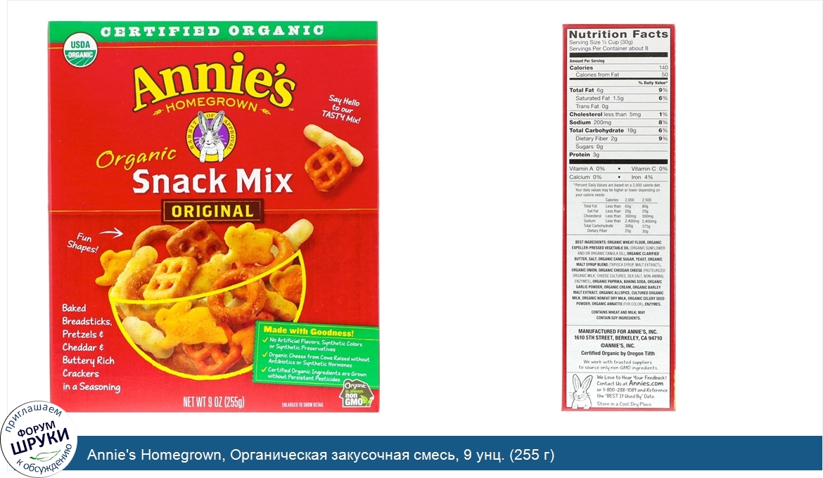 Друзья, если у вас есть отзыв/дополнение/комментарий/вопрос относительно Annie's Homegrown, Органическая закусочная смесь, 9 унц. (255 г) - напишите его ответом в эту тему (это будет полезно всему сообществу в целом и вам в отдельности).