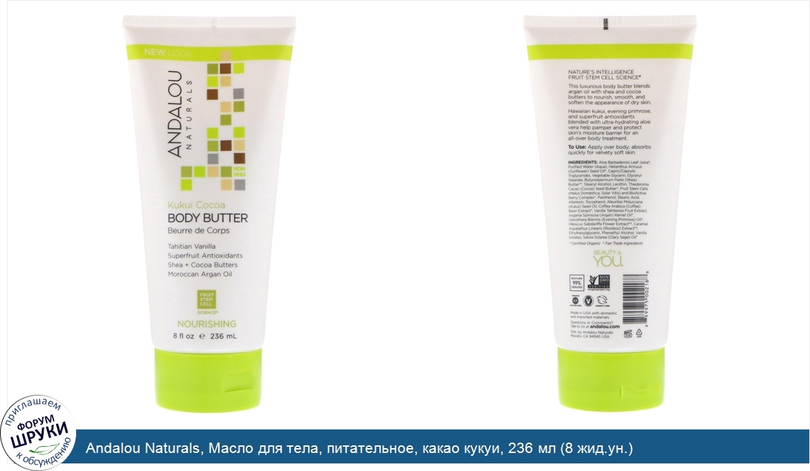 Друзья, если у вас есть отзыв/дополнение/комментарий/вопрос относительно Andalou Naturals, Масло для тела, питательное, какао кукуи, 236 мл (8 жид.ун.) - напишите его ответом в эту тему (это будет полезно всему сообществу в целом и вам в отдельности).