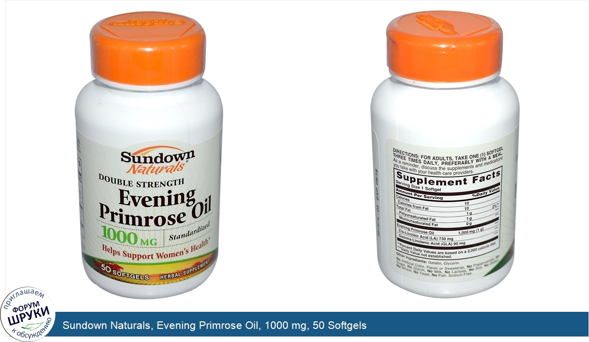 Друзья, если у вас есть отзыв/дополнение/комментарий/вопрос относительно Sundown Naturals, Evening Primrose Oil, 1000 mg, 50 Softgels - напишите его ответом в эту тему (это будет полезно всему сообществу в целом и вам в отдельности).