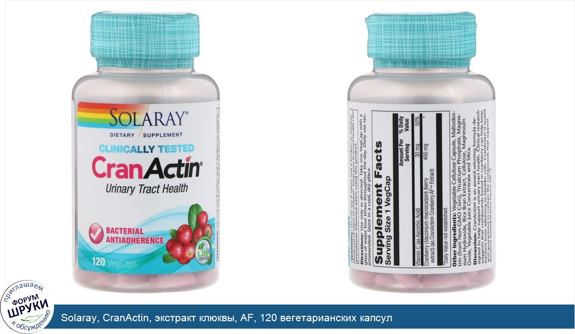 ru Solaray, CranActin, экстракт клюквы, AF, 120 вегетарианских капсул