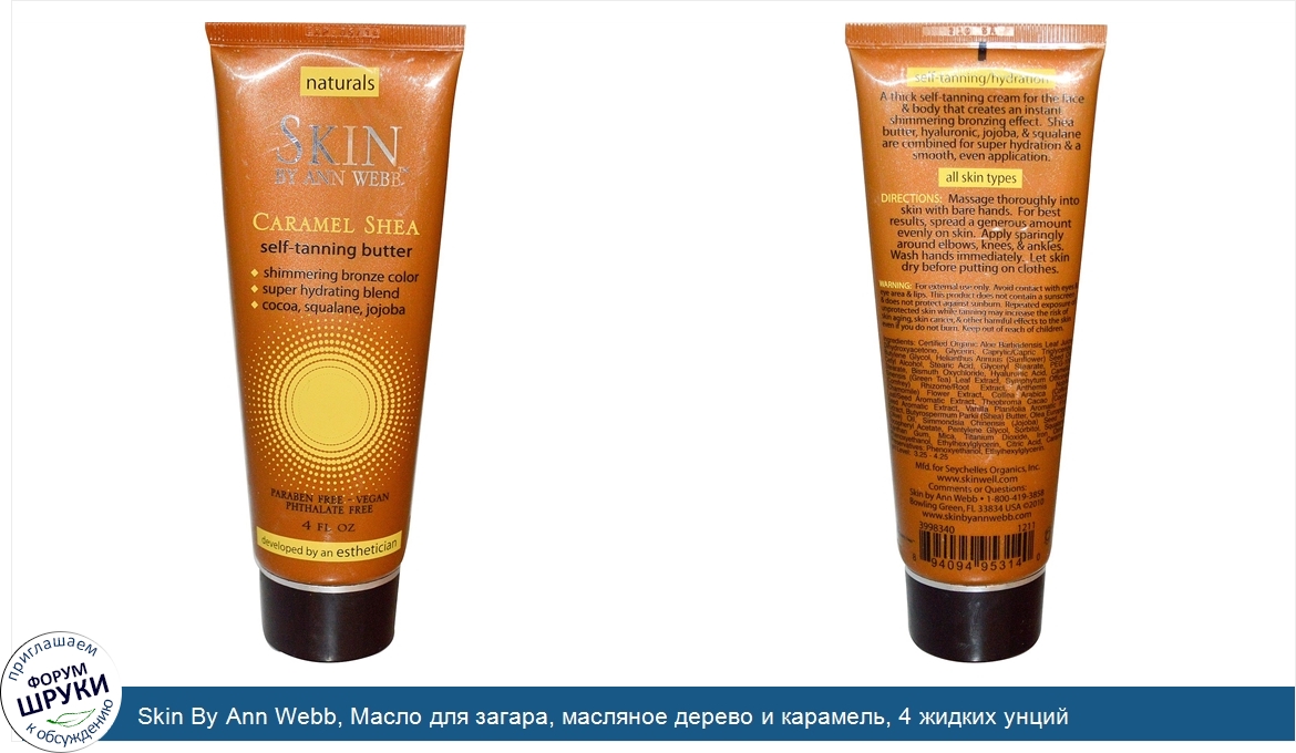 Друзья, если у вас есть отзыв/дополнение/комментарий/вопрос относительно Skin By Ann Webb, Масло для загара, масляное дерево и карамель, 4 жидких унций - напишите его ответом в эту тему (это будет полезно всему сообществу в целом и вам в отдельности).