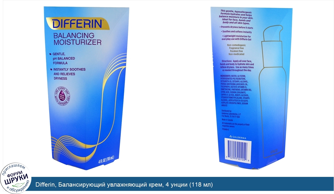 [DESCRIPT]Gentle pH Balanced Formula. Instantly Soothes and Relieves Dryness. Use Every Day. With Differing Gel. Non-Comedogenic. Fragrance Free. Paraben Free. Non-Medicated. This gentle, hypoallergenic formula hydrates and helps balance moisture in your ski. Ideal for face, hands and body and all skin types. Prevents dryness before it starts. Soothes and softens instantly. Lightweight moisturizer for everyday use with Differin Gel.[/DESCRIPT]... (описание дополняется)