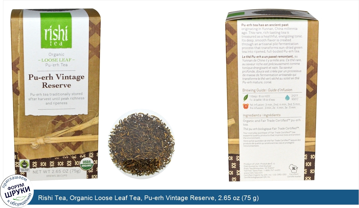 Друзья, если у вас есть отзыв/дополнение/комментарий/вопрос относительно Rishi Tea, Organic Loose Leaf Tea, Pu-erh Vintage Reserve, 2.65 oz (75 g) - напишите его ответом в эту тему (это будет полезно всему сообществу в целом и вам в отдельности).