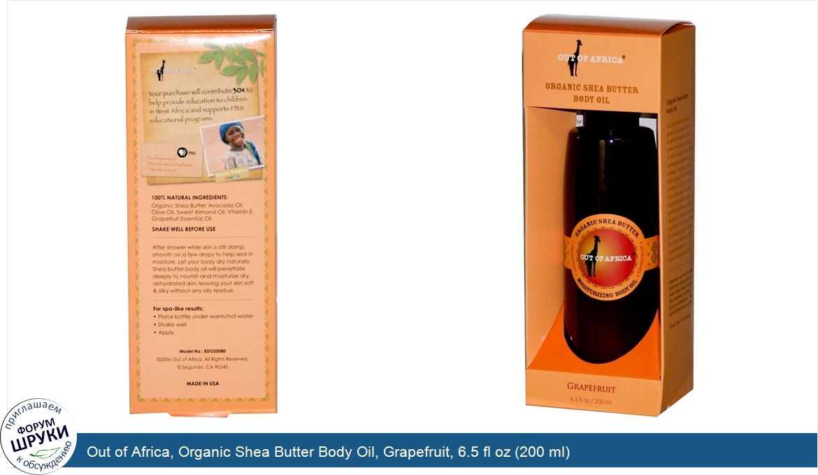 Друзья, если у вас есть отзыв/дополнение/комментарий/вопрос относительно Out of Africa, Organic Shea Butter Body Oil, Grapefruit, 6.5 fl oz (200 ml) - напишите его ответом в эту тему (это будет полезно всему сообществу в целом и вам в отдельности).