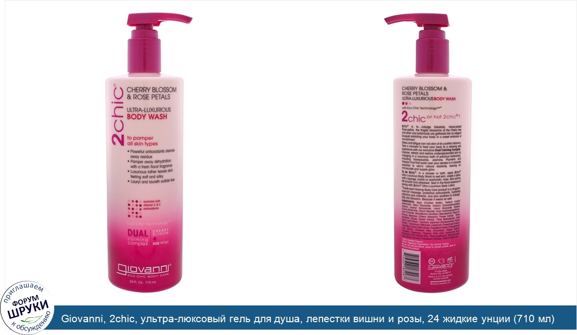 Giovanni, 2chic, ультра-люксовый гель для душа, лепестки вишни и розы, 24 жидкие унции (710 мл)