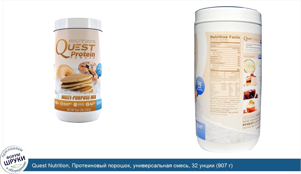 Друзья, если у вас есть отзыв/дополнение/комментарий/вопрос относительно Quest Nutrition, Протеиновый порошок, универсальная смесь, 32 унции (907 г) - напишите его ответом в эту тему (это будет полезно всему сообществу в целом и вам в отдельности).