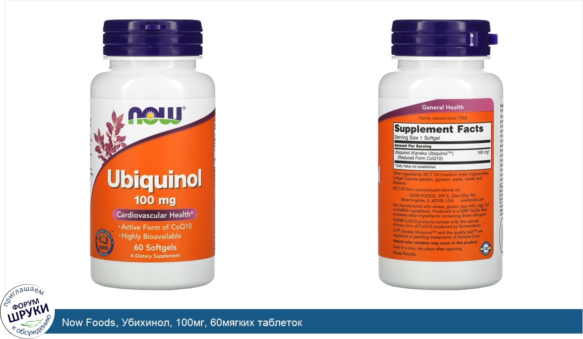 ru Now Foods, Убихинол, 100мг, 60мягких таблеток