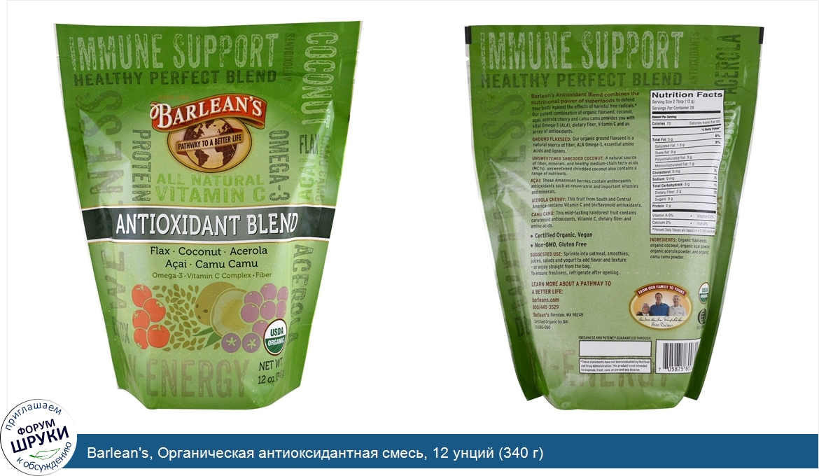Друзья, если у вас есть отзыв/дополнение/комментарий/вопрос относительно Barlean's, Органическая антиоксидантная смесь, 12 унций (340 г) - напишите его ответом в эту тему (это будет полезно всему сообществу в целом и вам в отдельности).