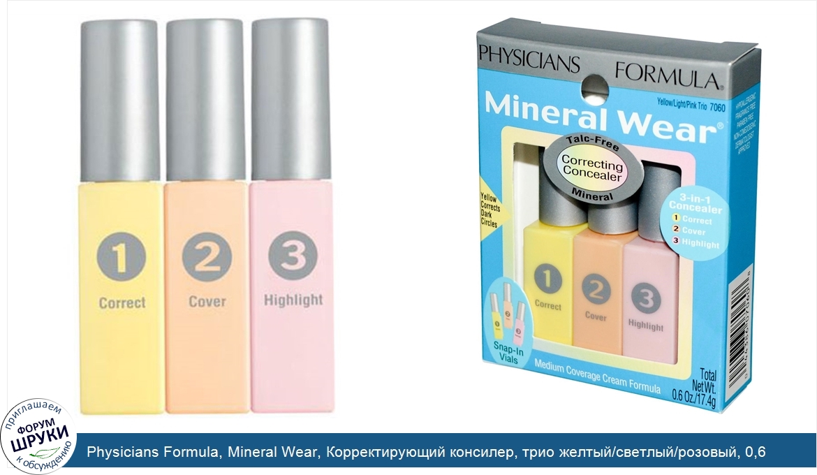 Physicians Formula, Mineral Wear, Корректирующий консилер, трио желтый/светлый/розовый, 0,6 унции (17,4 г)