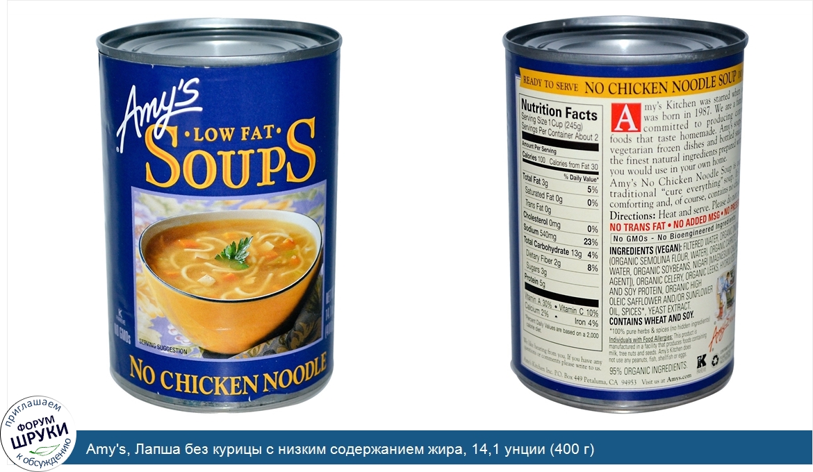 Друзья, если у вас есть отзыв/дополнение/комментарий/вопрос относительно Amy's, Лапша без курицы с низким содержанием жира, 14,1 унции (400 г) - напишите его ответом в эту тему (это будет полезно всему сообществу в целом и вам в отдельности).