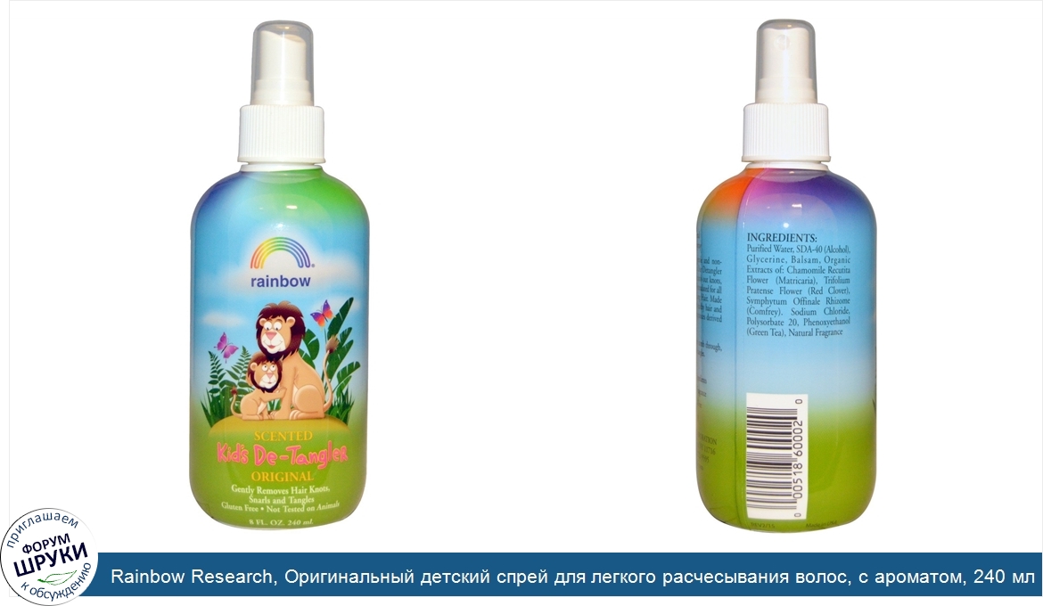 Друзья, если у вас есть отзыв/дополнение/комментарий/вопрос относительно Rainbow Research, Оригинальный детский спрей для легкого расчесывания волос, с ароматом, 240 мл - напишите его ответом в эту тему (это будет полезно всему сообществу в целом и вам в отдельности).