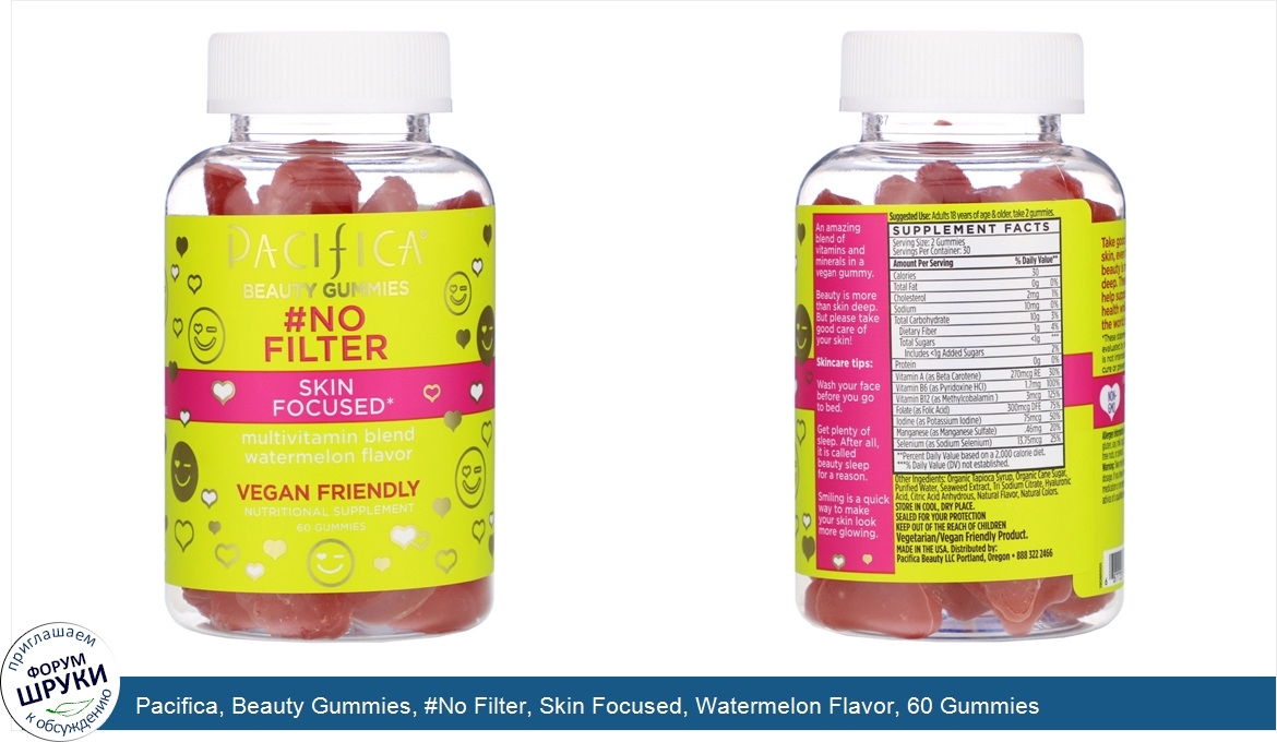 Друзья, если у вас есть отзыв/дополнение/комментарий/вопрос относительно Pacifica, Beauty Gummies, #No Filter, Skin Focused, Watermelon Flavor, 60 Gummies - напишите его ответом в эту тему (это будет полезно всему сообществу в целом и вам в отдельности).