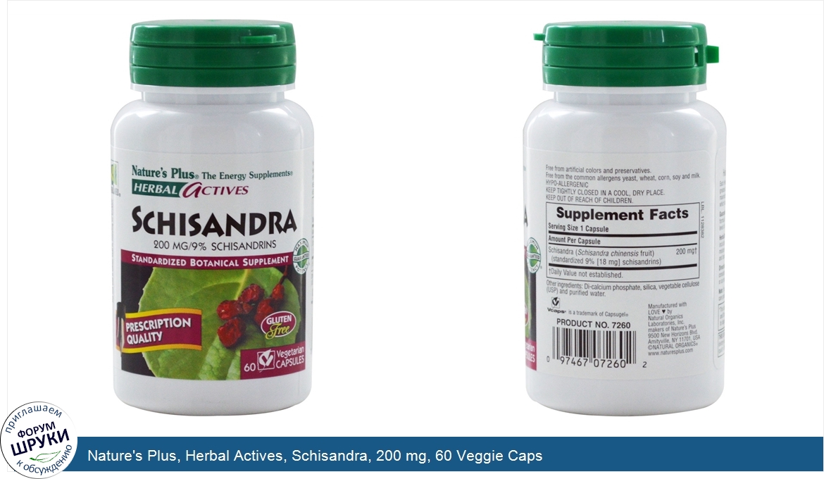 Друзья, если у вас есть отзыв/дополнение/комментарий/вопрос относительно Nature's Plus, Herbal Actives, Schisandra, 200 mg, 60 Veggie Caps - напишите его ответом в эту тему (это будет полезно всему сообществу в целом и вам в отдельности).