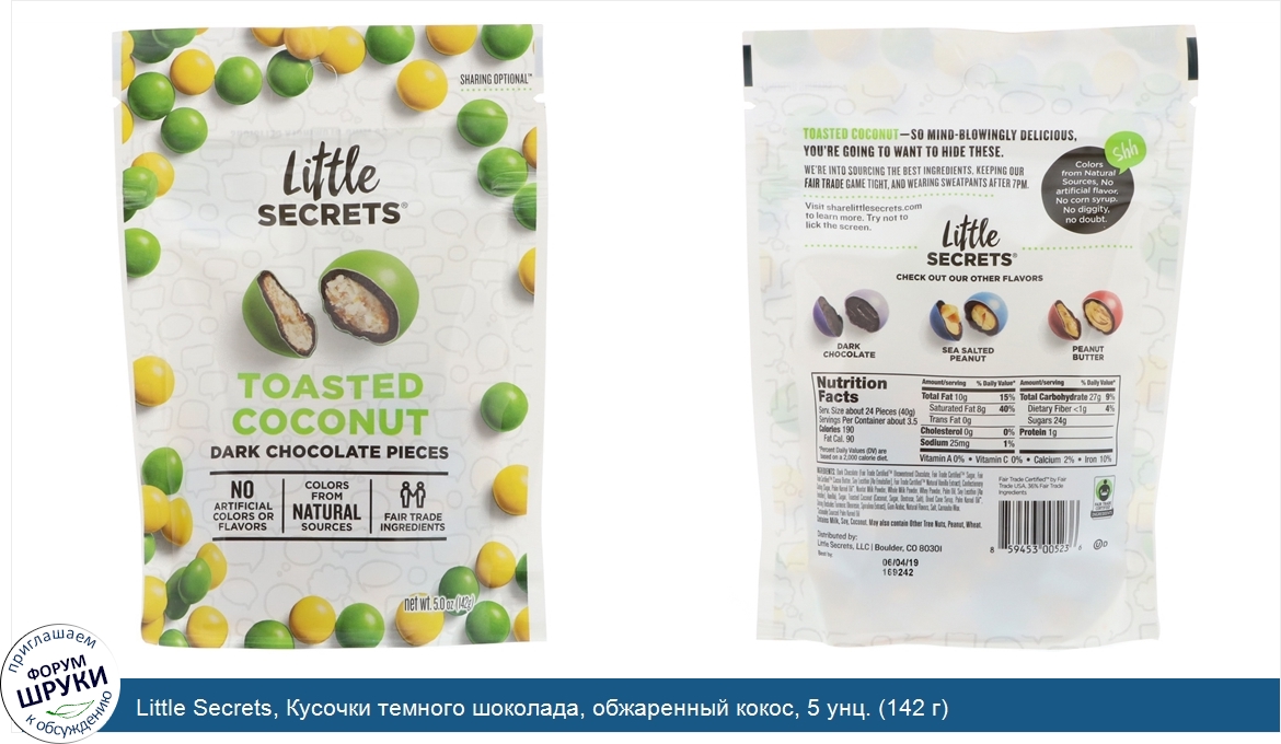 Друзья, если у вас есть отзыв/дополнение/комментарий/вопрос относительно Little Secrets, Кусочки темного шоколада, обжаренный кокос, 5 унц. (142 г) - напишите его ответом в эту тему (это будет полезно всему сообществу в целом и вам в отдельности).