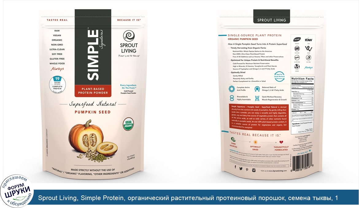 Друзья, если у вас есть отзыв/дополнение/комментарий/вопрос относительно Sprout Living, Simple Protein, органический растительный протеиновый порошок, семена тыквы, 1 фунт (454 г) - напишите его ответом в эту тему (это будет полезно всему сообществу в целом и вам в отдельности).