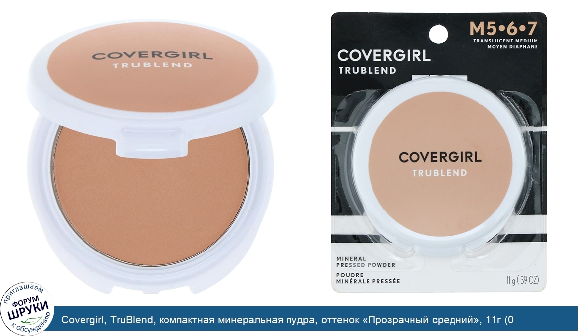 ru Covergirl, TruBlend, компактная минеральная пудра, оттенок «Прозрачный средний», 11г (0,39унции)
