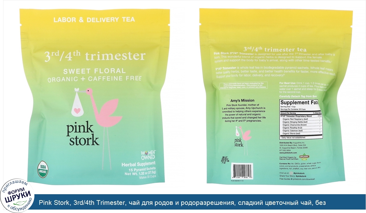 Друзья, если у вас есть отзыв/дополнение/комментарий/вопрос относительно Pink Stork, 3rd/4th Trimester, чай для родов и родоразрешения, сладкий цветочный чай, без кофеина, 15саше-пирамидок, 37,5г (1,32унции) - напишите его ответом в эту тему (это будет полезно всему сообществу в целом и вам в отдельности).