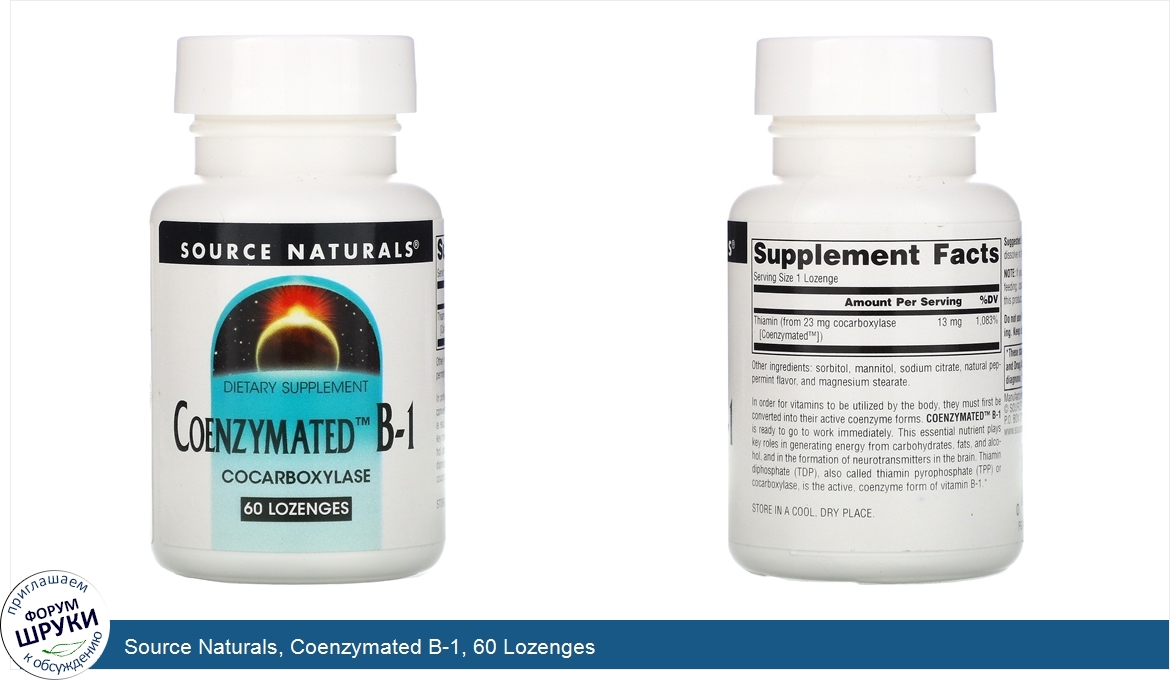 Source Naturals, Coenzymated B-1, 60 Lozenges