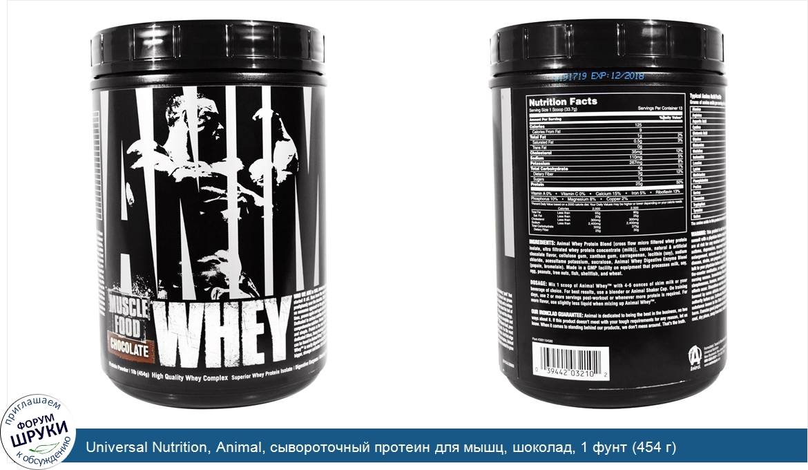 Universal Nutrition, Animal, сывороточный протеин для мышц, шоколад, 1 фунт (454 г)