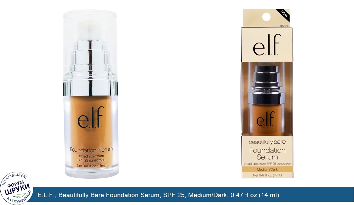 ru E.L.F., Beautifully Bare Foundation Serum, SPF 25, Medium/Dark, 0.47 fl oz (14 ml)
