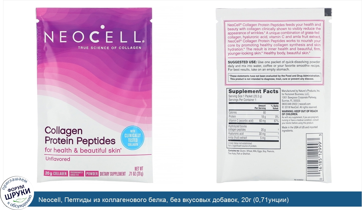 Друзья, если у вас есть отзыв/дополнение/комментарий/вопрос относительно Neocell, Пептиды из коллагенового белка, без вкусовых добавок, 20г (0,71унции) - напишите его ответом в эту тему (это будет полезно всему сообществу в целом и вам в отдельности).