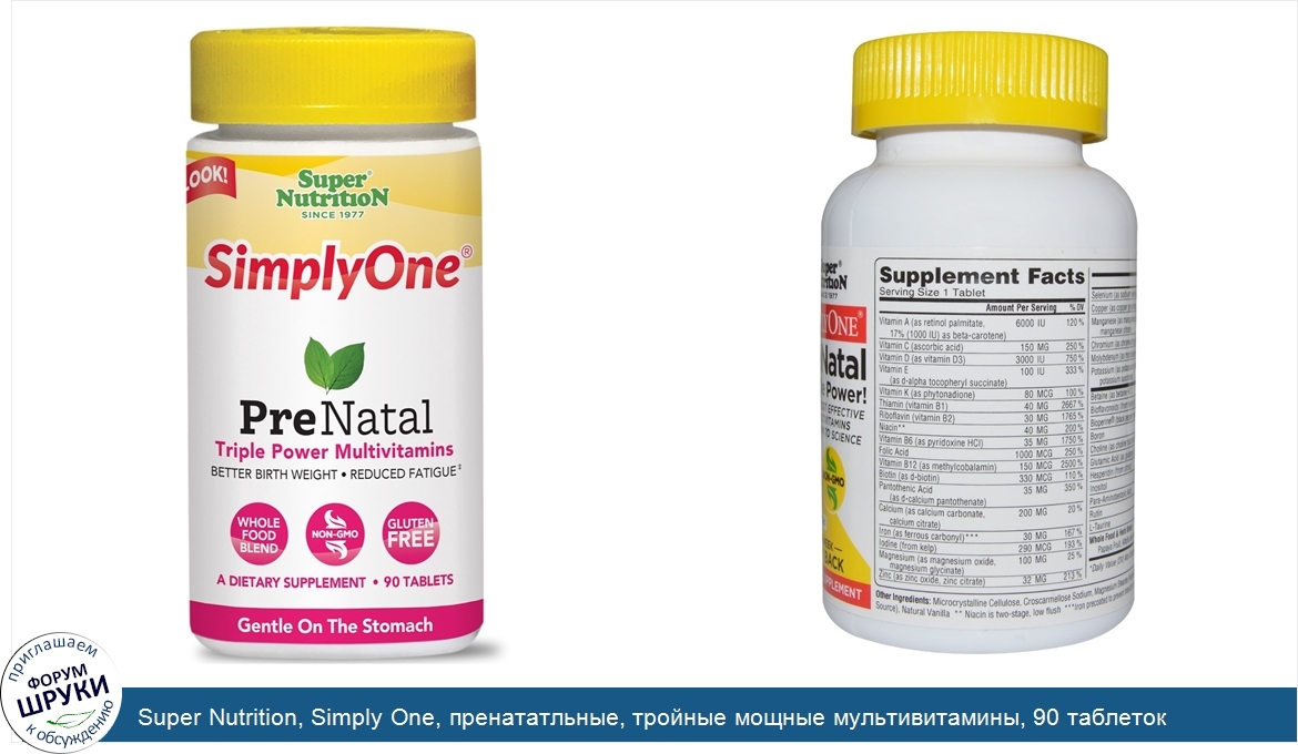 Друзья, если у вас есть отзыв/дополнение/комментарий/вопрос относительно Super Nutrition, Simply One, пренататльные, тройные мощные мультивитамины, 90 таблеток - напишите его ответом в эту тему (это будет полезно всему сообществу в целом и вам в отдельности).